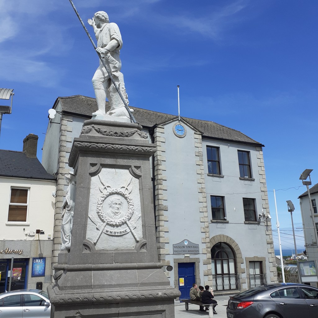 A visit to the Gaol includes these and other narratives. You may already have noted the presence of Billy Byrne of Ballymanus. He was a leader in the rebellion of 1798, and was executed in Wicklow Gaol. His ghostly figure, pike in hand, dominates the Market Square. His gesture towards the Town Hall, perhaps a cautionary one, a reminder of where true power resides.
